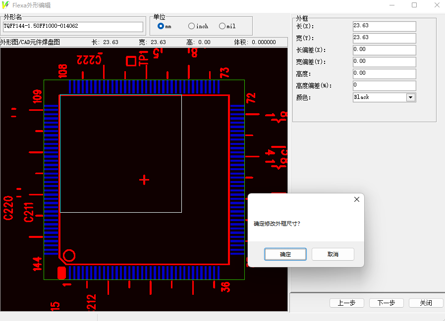 7. 下一步,設置元件的基本尺寸參數,如果你有DAESHEET,那咱們參照上面尺寸直接輸入就行。若不知道,那就在左邊預覽窗用鼠標框選出大概尺寸。