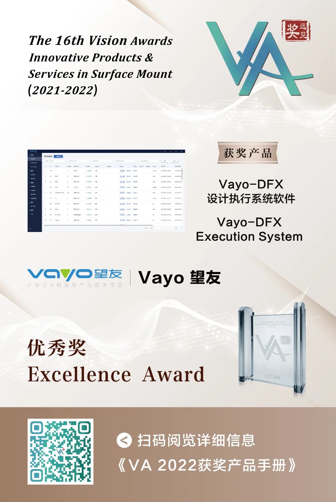 熱烈祝賀望友科技的Vayo-DFX設(shè)計(jì)執(zhí)行系統(tǒng)軟件榮獲第16屆遠(yuǎn)見獎(jiǎng)之“遠(yuǎn)見優(yōu)秀獎(jiǎng)”!